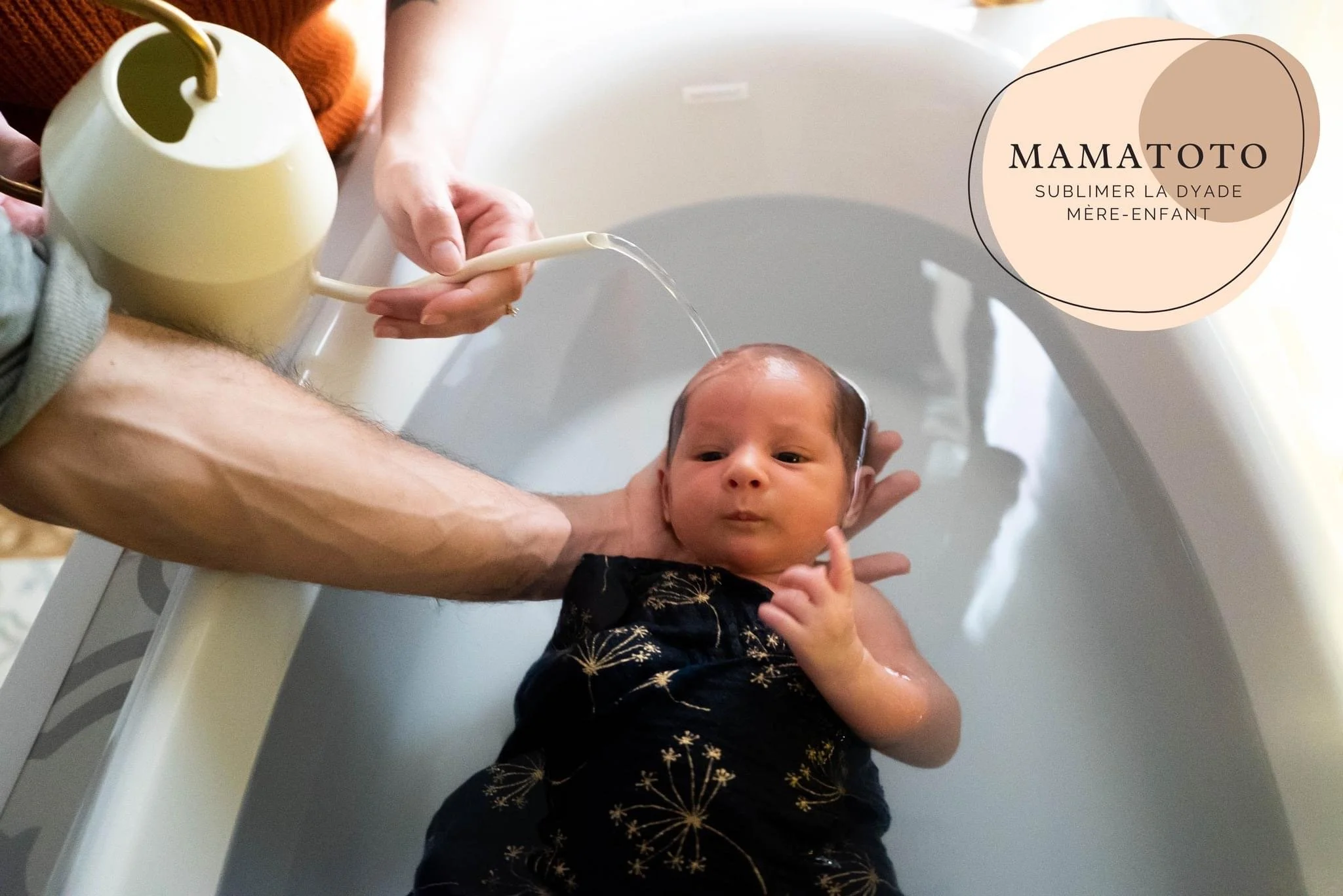 Le bain enveloppé est un doux moment d’émotions hors du temps à offrir à votre bébé.